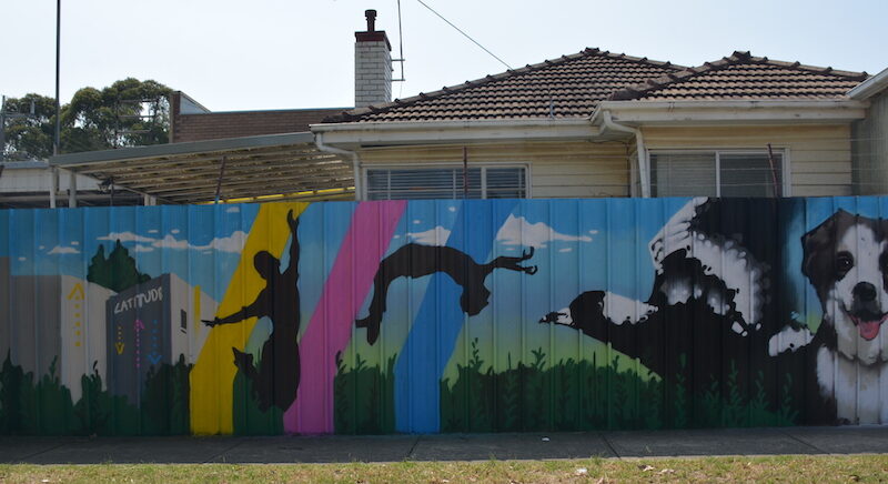 Funded by the Victorian Government’s Community Crime Prevention Program, you can see this mural on the corner of Orr Street and Bamfield Road in Heidelberg West. It is part of an overall plan to improve safety and general amenity in the area.